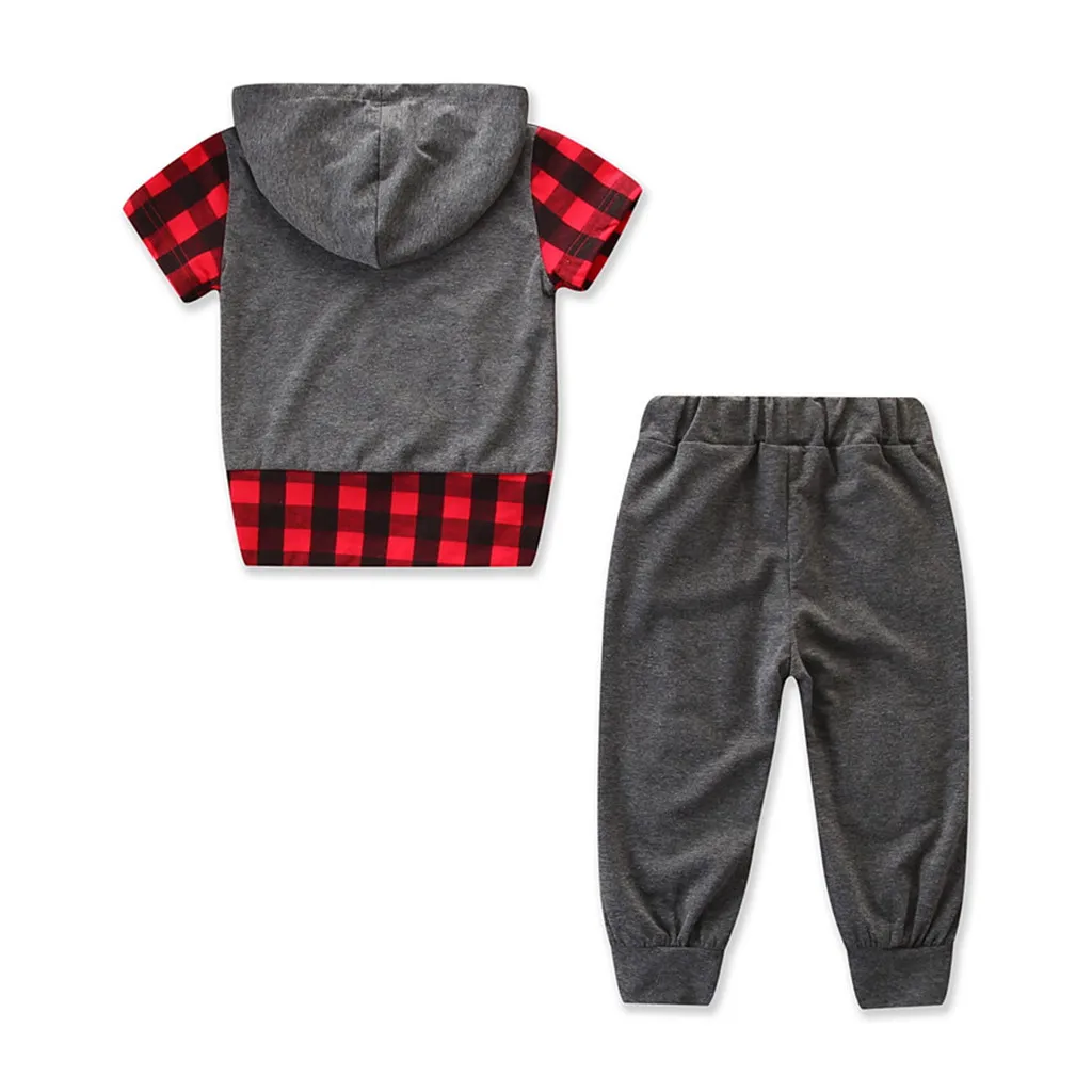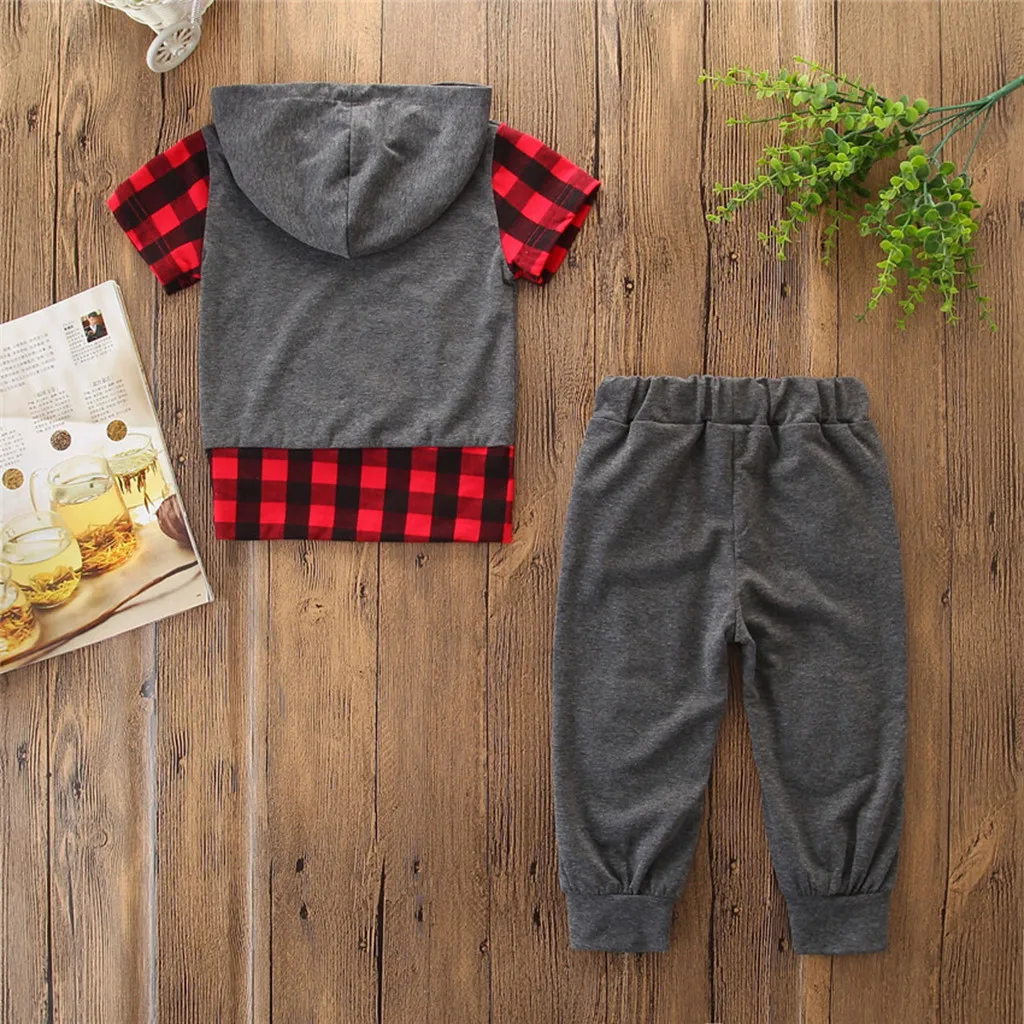 Limited Price of CHAMSGEND Toddler Kids Baby Girls Boys Outfits Cotton Blend Clothes Plaid Hooded T-shirt Tops+Pants