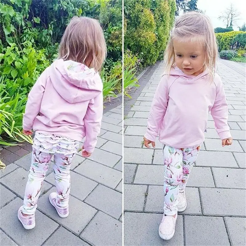 Best Chance for Cute Newborn Baby Sets Fashion Kids Girl Long Sleeve Hoodies Pink Shirt Top+Princess Ruffle Floral